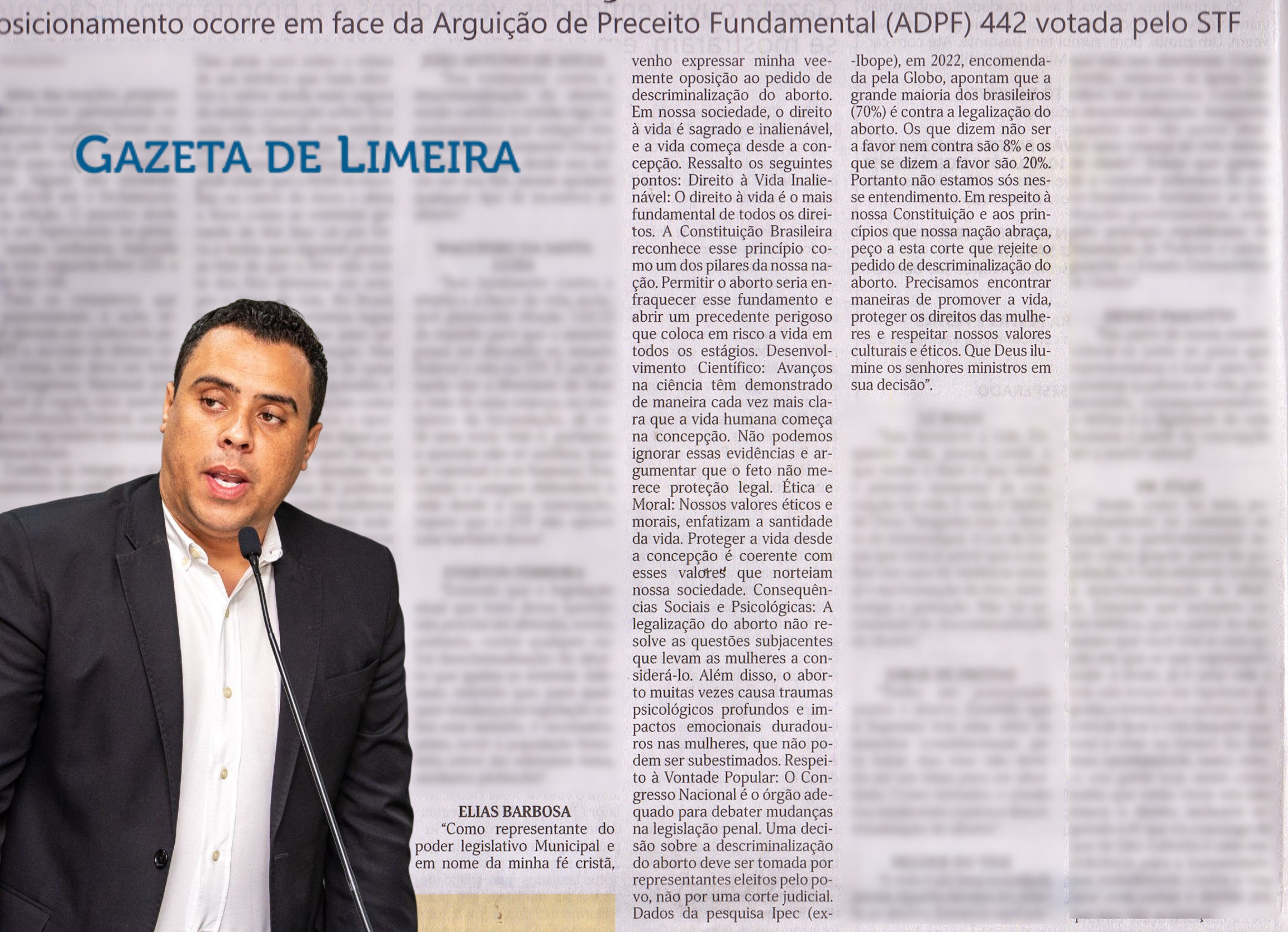 O Vereador Elias Barbosa se posicionou contra descriminaliza??o do Aborto, em resposta a um questionamento do jornal Gazeta de Limei...